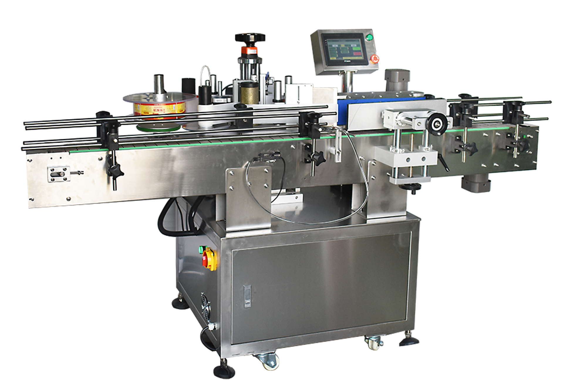 全自動圓瓶貼標機(搓滾式),適用圓周產(chǎn)品單標貼標。設備可單獨使用,可對接灌裝線、理瓶機、套標機連線使用??蛇x配色帶打碼機和噴碼機,實現(xiàn)在標簽上打印生產(chǎn)日期和批號信息,實現(xiàn)貼標-賦碼一體化。